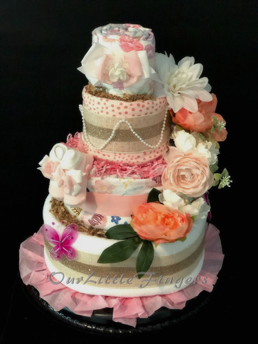 Unique Diaper Cake Girl Flower Diaper Cake Boho Rustic Diaper Cake Ourlittlefingers